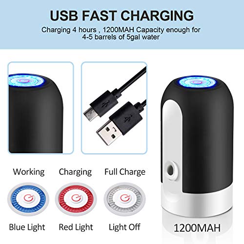 • 💧 【USB RECHARGEABLE】: Built-in high-capacity rechargeable battery, can used for 30-60 days once fully charged, pump about 5-6 barrels of 5 gallon bottle water.